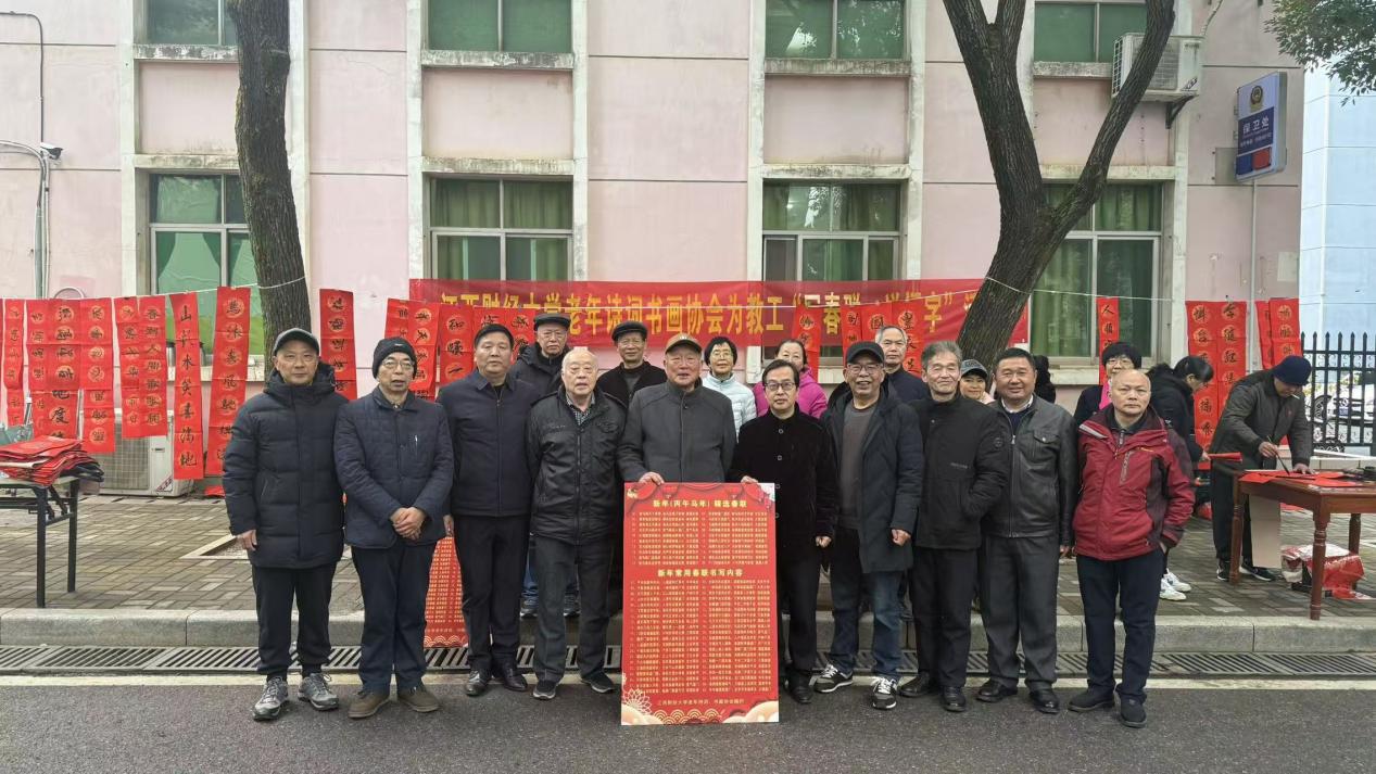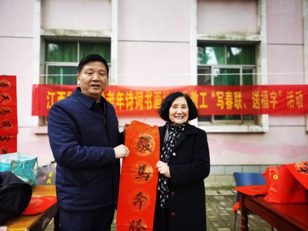 离退休人员工作处高度重视本次活动。黄应足、胡全安等处领导当日一大早便带领本处工作团队妥善布置现场。胡建国处长还受邀与协会同志一道,欣然为教职员工赠送春联。