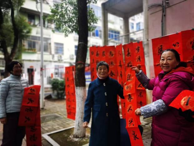 1月5日上午,时令小寒,蛟桥园西区教工公寓却是热气腾腾、热闹非凡——校老年诗词书画协会正在此举行义务为教职员工“写春联送‘福’字”活动。本次活动由校离退休人员工作处主办、老年诗词书画系会承办。校离退休人员工作处党委书记、处长胡建国,校工会主席郑赟亲临现场指导。