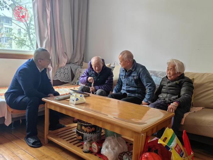 随后,黄处长一行马不停蹄地走访了几位独居、孤寡的高龄老同志。在94岁高龄的宋佩老师家中,黄黑平处长仔细查看了老人的居住环境,详细了解其生活状况。