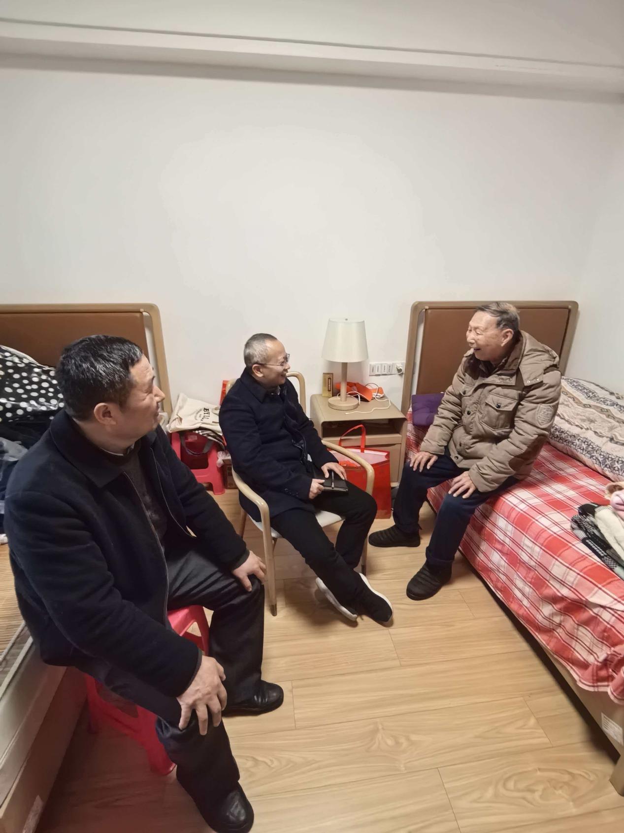 3月18日上午,黄黑平处长一行首先来到了江投北园养老院。这里居住着我校四位年事已高的离退休老教师。黄处长与老人们促膝而坐,亲切交谈,详细询问他们的身体状况、饮食起居以及医疗护理情况。