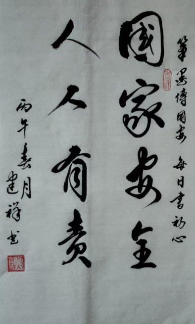 今年第十一个全民国家安全教育日到来之际,江西省老年书画学会印发通知,要求各位会员积极参与,以书法艺术助力国家安全宣传,展现老同志风采。校老年诗词书画协会闻风而动,快速反应,根据省学会相关要求,积极组织本会冷清波、胡晓毛、徐沅林、李萍、余镇邦、郑建祥、师本亮、武心莹、纪春福、李建新等10位会员,自4月10日起连续6天,坚持每天参加线上书法打卡活动,助力2026全民国家安全教育日普法宣传活动。